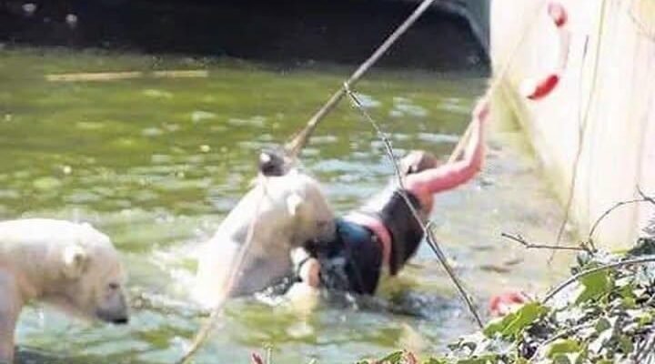 A 32-year-old woman who jumped into a polar bear enclosure at the Berlin Zoo was attacked by a polar bear