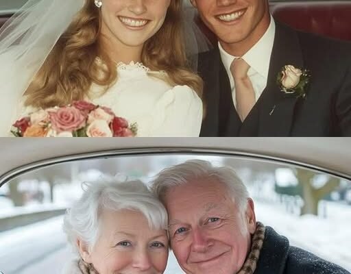 Sixty years ago, in a quaint chapel filled with loved ones, a young couple joyfully exchanged their vows, their faces beaming with happiness and hearts brimming with dreams. The bride, radiant in her elegant white dress, held a lovely bouquet of roses, her eyes sparkling with anticipation. The groom, looking sharp in his suit, grasped her hand with confidence, ready to embark on an unpredictable journey that they were eager to face together.