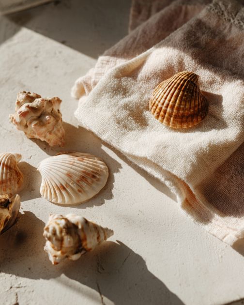 Place the seashells on one half of the towel and fold the other half over them, fully covering the shells.