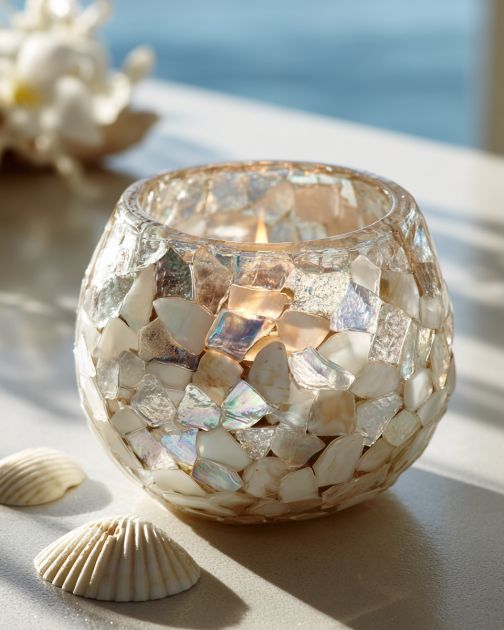 Place these seashell winter votives on a mantel or as a centerpiece on your dining table for a serene coastal vibe. Pair them with other natural elements like driftwood, pinecones, or sprigs of evergreen for a balanced seasonal arrangement. Use neutral or cool-toned linens and add soft lighting to enhance the cozy, seaside feel. These votives work beautifully in a minimalist or rustic decor setting, blending seamlessly with both contemporary and traditional styles.