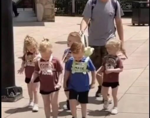 31-year-old dad, Jordan Driskell decided to find a creative solution to his problem. He bought leashes meant for children to control his rambunctuous little kids when they are in public together.