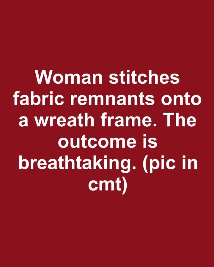 Take your wreath frame and begin tying the fabric strips around it, securing them with a simple knot. Continue this process until the entire frame is covered, overlapping the strips for a fuller look.