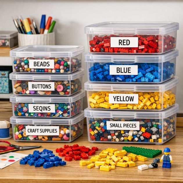 For families with children or craft enthusiasts, these containers are perfect for sorting and storing supplies. Organize beads, buttons, and other small craft items in separate containers to keep them from mixing. Likewise, use them to sort Lego pieces by color or size, making it easier to find the right piece during playtime. Label each container for quick access, and stack them for efficient storage. This approach not only keeps your space tidy but also encourages creativity by making supplies easy to find.