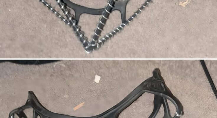 We were halfway through sorting one of the back shelves when I pulled out a small, odd-looking object buried beneath a pile of tangled cords and an old snow shovel. It was black, stretchy, and covered in chains with rubbery spikes. At first glance, it looked… suggestive. Way too suggestive.