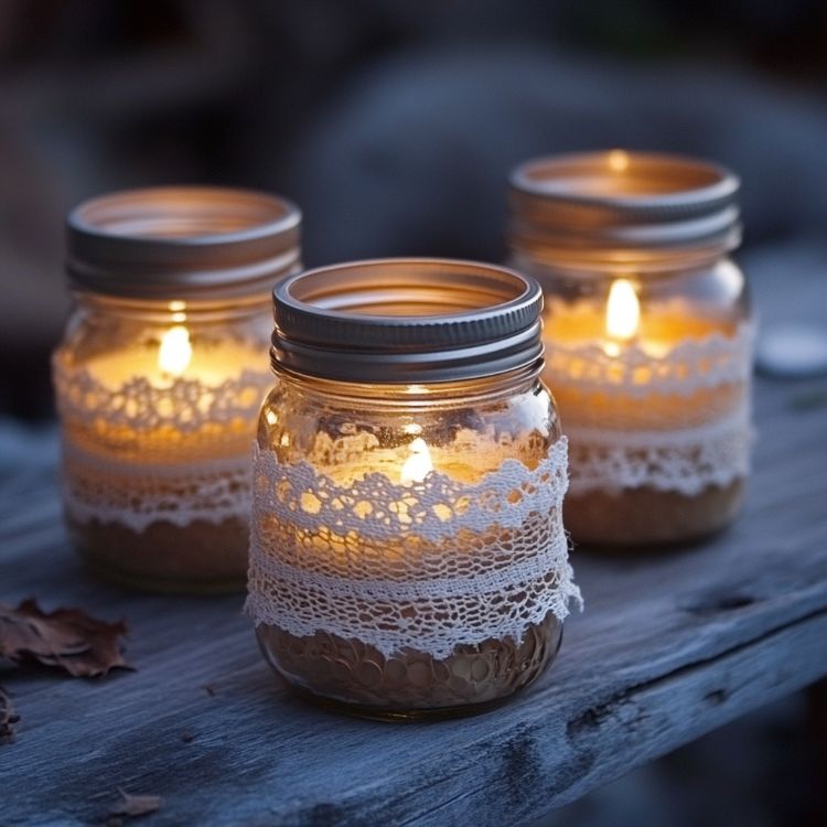 Transform mason jars into elegant candle holders by adding a touch of sophistication with lace, burlap, or metallic accents. Start by wrapping the jar with a strip of lace or burlap, securing it with hot glue. For a more glamorous look, use metallic spray paint to coat the jar’s exterior, leaving the top rim unpainted for a contrasting effect. Place an LED tea light inside for a safe, flickering glow. These candle holders are perfect for creating a cozy atmosphere on your dining table or mantel.