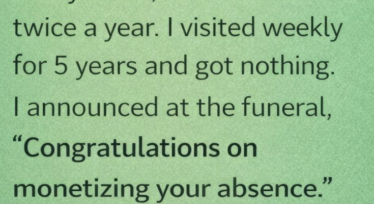 “Congratulations,” I said, my voice cutting through the quiet air. “On monetizing your absence.”