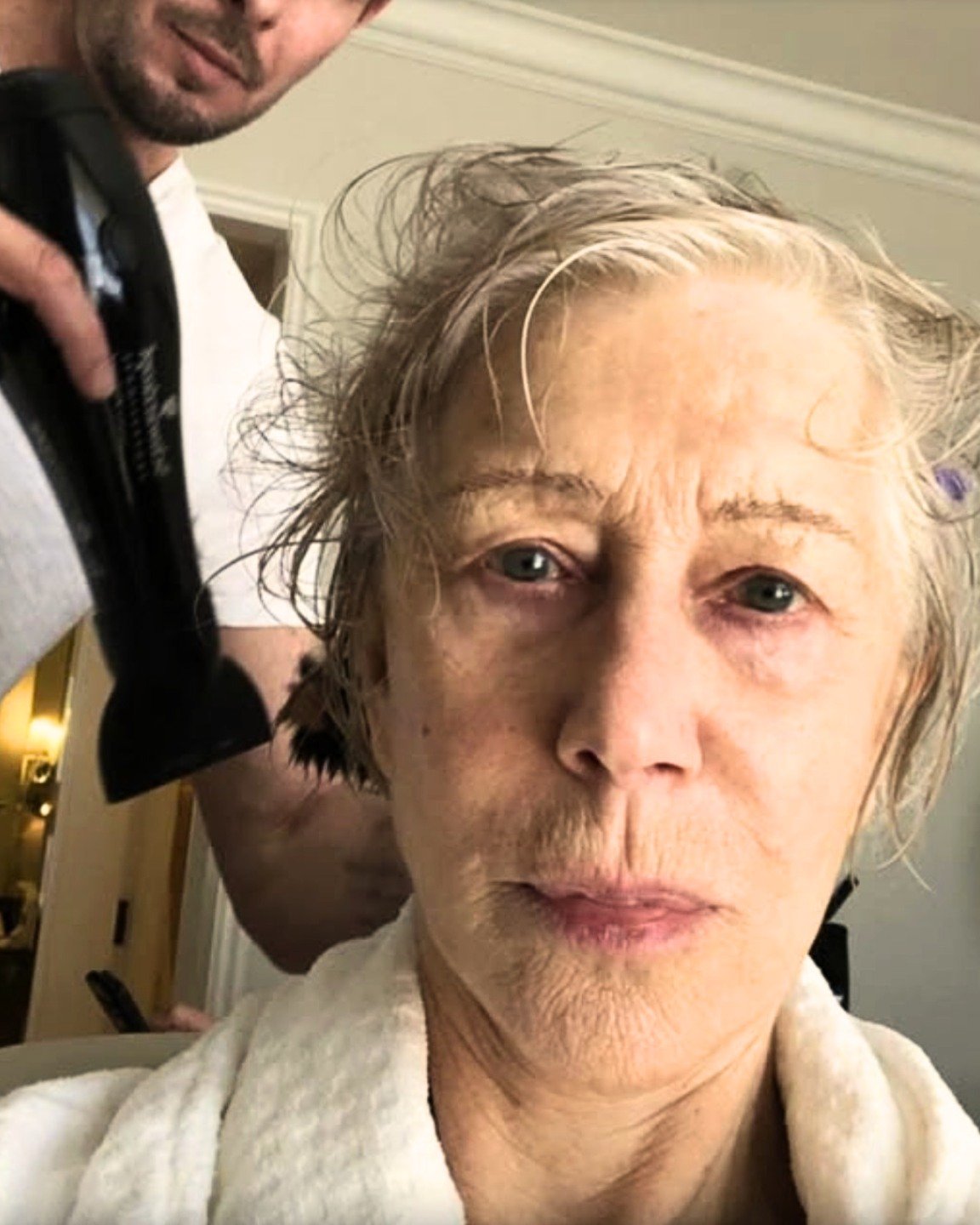 Her entire ensemble was gorgeous but what caught everyone’s attention was Mirren’s brilliant blue hair. The actress is known for sporting her natural gray hair but this time she chose to do something different.