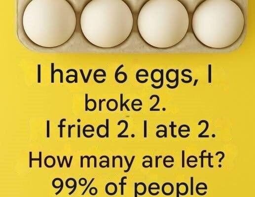 “I have 6 eggs. I broke 2. I fried 2. I ate 2. How many eggs do I have left?”