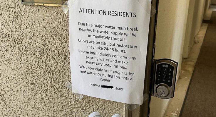 I got home to my apartment today and saw this note taped to my door basically announcing that the water is being shut off for the next 24–48 hours because of some water main break.