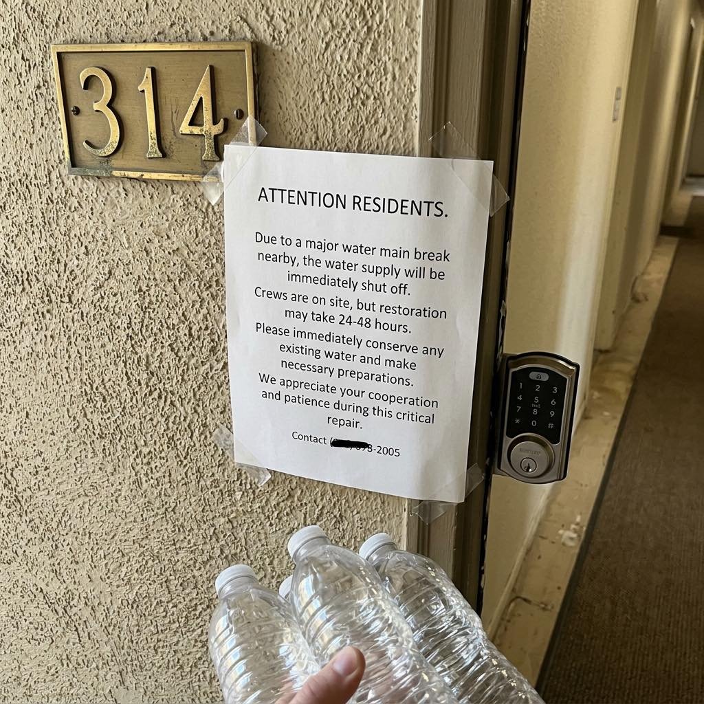 So yeah, I immediately went and grabbed a few bottles of water because I’m not about to sit in my own apartment unable to flush a toilet or wash my hands while management sends out polite little notices thanking everyone for their “patience.” If they knew the repair could take two days, maybe they should’ve thought about giving residents some actual time to prepare instead of acting like this is no big deal.