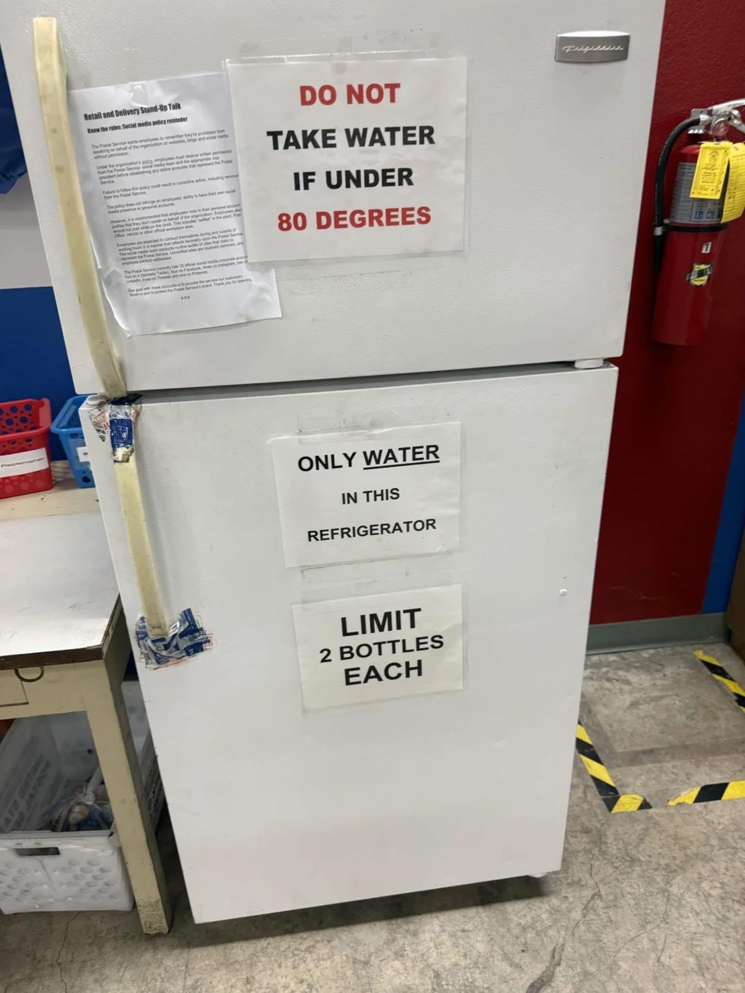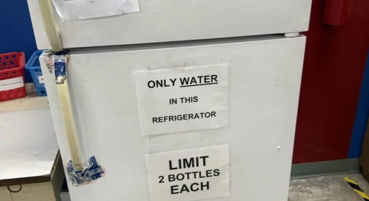 ‘ONLY WATER IN THIS REFRIGERATOR’