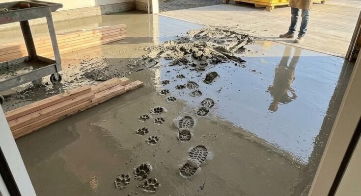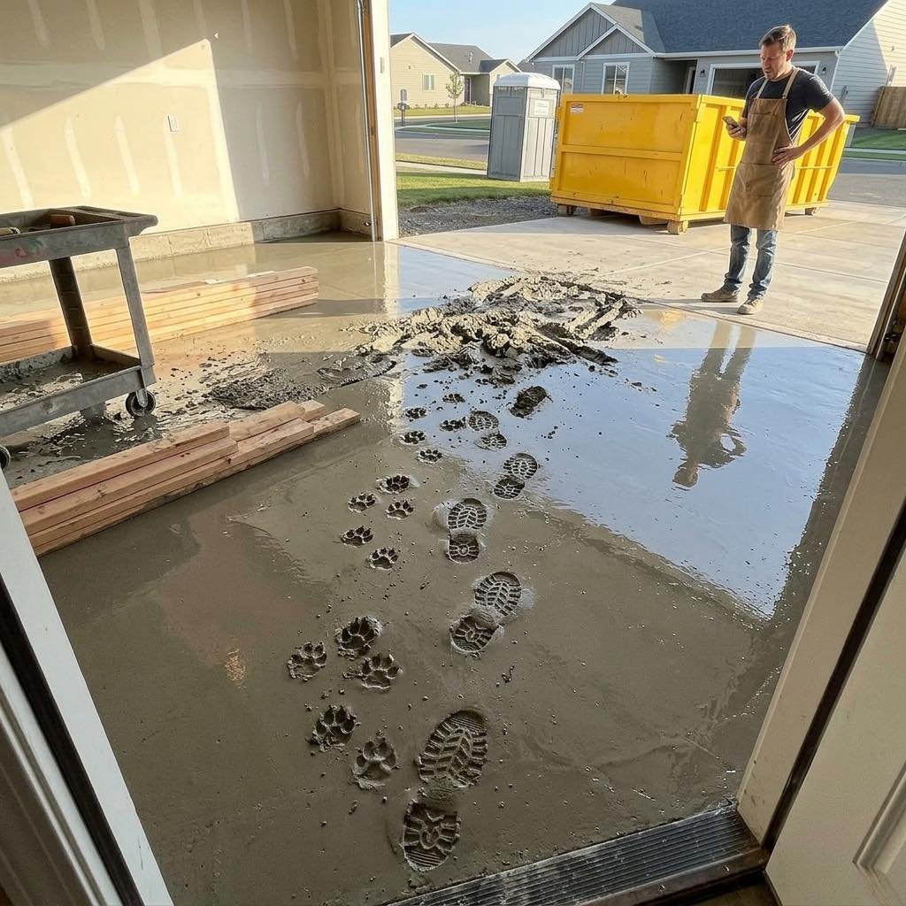 Come to find out one of the workers thought it would be fine to walk his dog through the garage while the floor was still wet. No heads up, no apology, nothing. Just walked across it and left the mess sitting there like it’s not a problem.