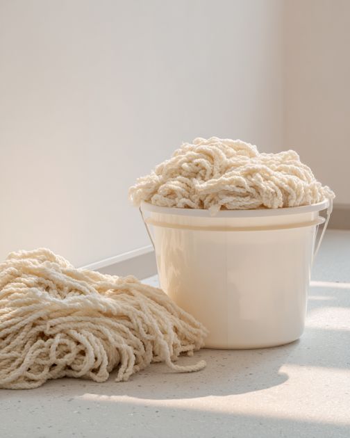 Measure the height and circumference of your plastic bucket to determine how much mop string you will need.