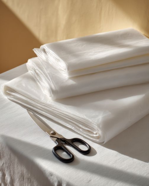 Unfold each plastic tablecloth and lay it flat on a clean surface.