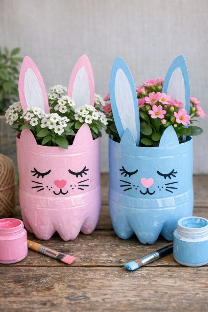 Transforming everyday items into whimsical decor is a delightful way to upcycle and add personality to your home. This DIY project involves turning clear 2-liter soda bottles into charming bunny planters, painted with soft pastel hues. Perfect for spring or any time you want to add a touch of cuteness to your space, these planters make for a fun and creative activity that showcases your artistic flair.