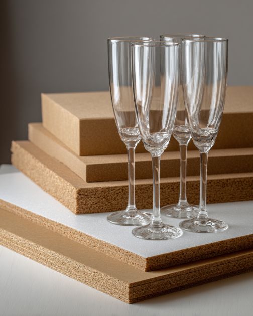 Once satisfied with the arrangement, use strong adhesive glue to attach the base of each champagne flute to the cardboard.
