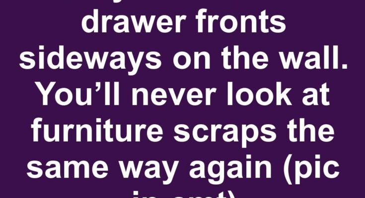 Lady mounts old drawer fronts sideways on the wall. You’ll never look at furniture scraps the same way again