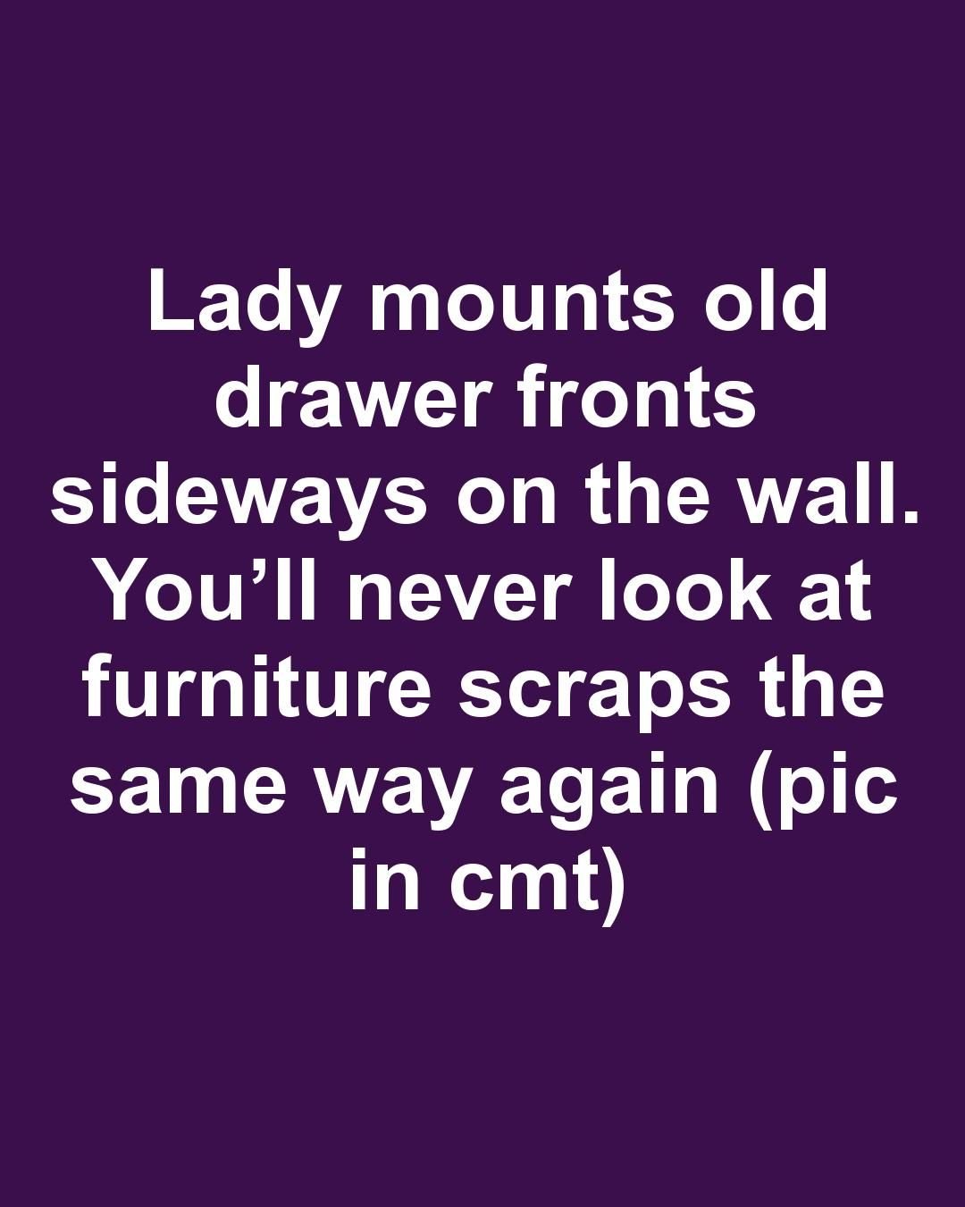 Lady mounts old drawer fronts sideways on the wall. You’ll never look at furniture scraps the same way again