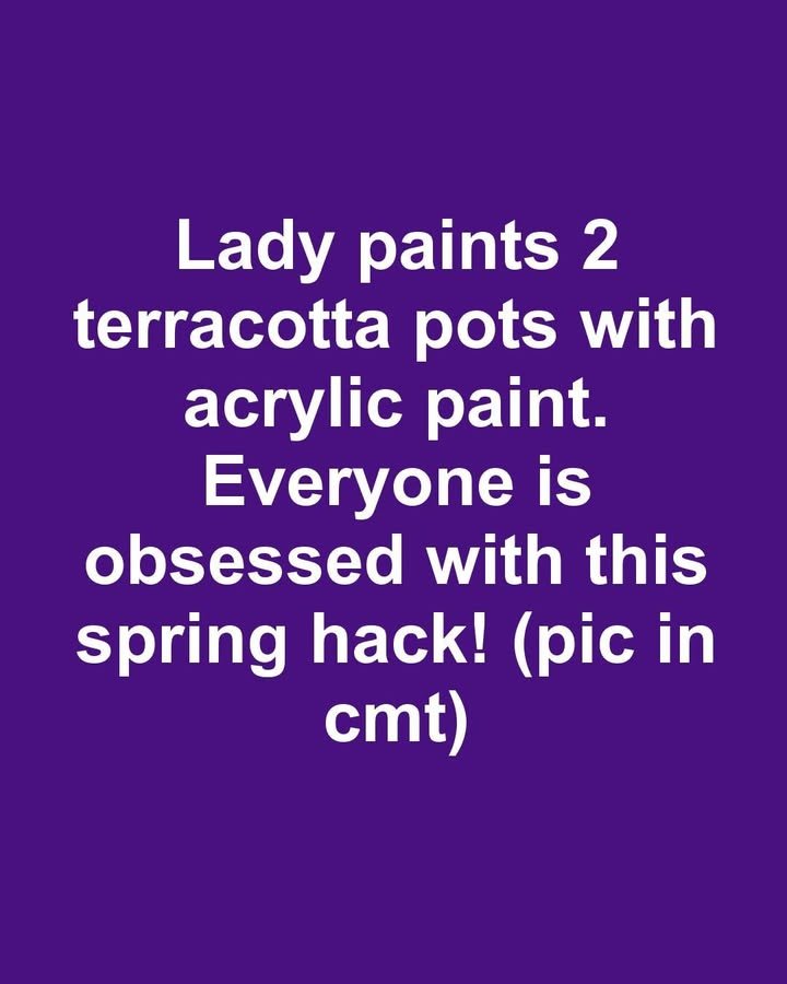 Lady paints 2 terracotta pots with acrylic paint. Everyone is obsessed with this spring hack!