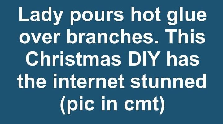 Lady pours hot glue over branches. This Christmas DIY has the internet stunned