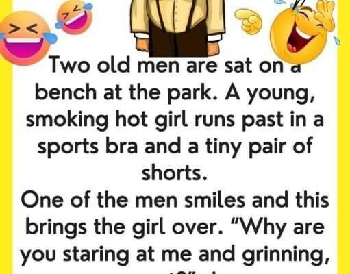 Two old men are sat on a bench at the park. A young, smoking hot girl runs past in a sports bra and a tiny pair of shorts. One of the men smiles and this brings the girl over. “Why are you staring at me and grinning, you pervert?” she says. Two old men are sat on a bench at the park. A young, smoking hot girl runs past in a sports bra and a tiny pair of shorts.