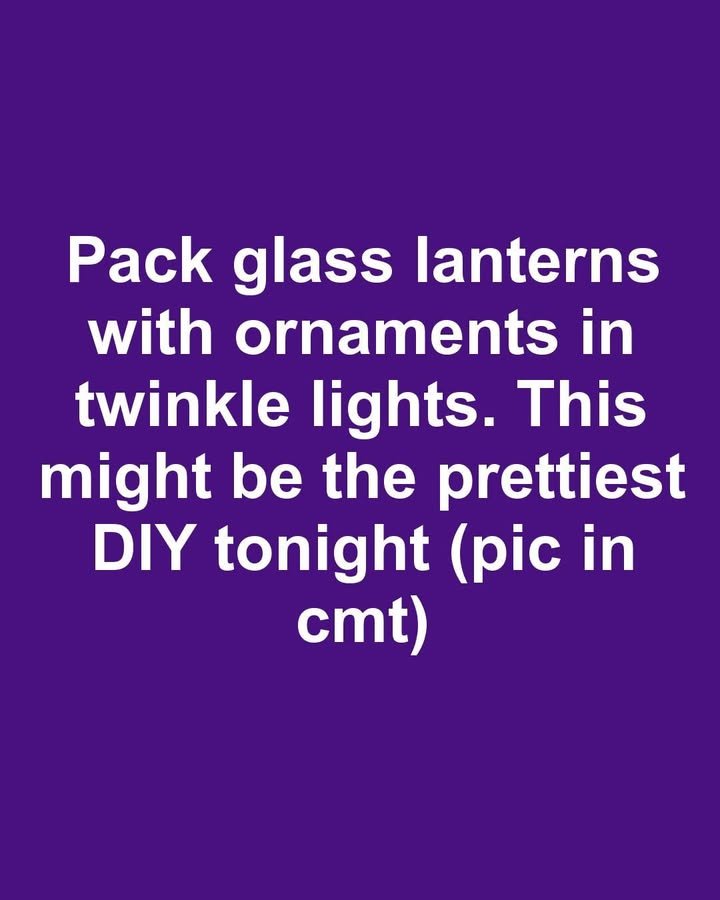 Pack glass lanterns with ornaments in twinkle lights. This might be the prettiest DIY tonight