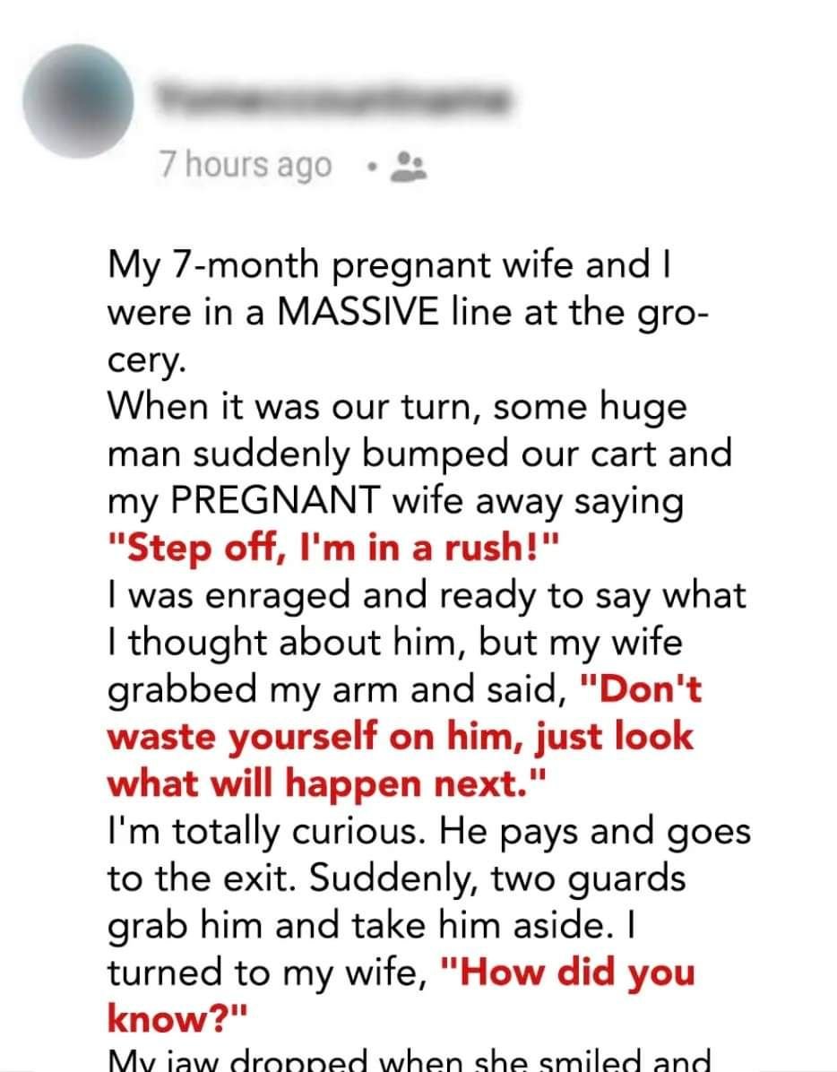 There I was, standing in a long, seemingly endless grocery line with my pregnant wife, Karol. She calmly held our cart, completely unbothered by the wait. Out of nowhere, a man rudely bumped into her, nearly knocking her and our groceries over.