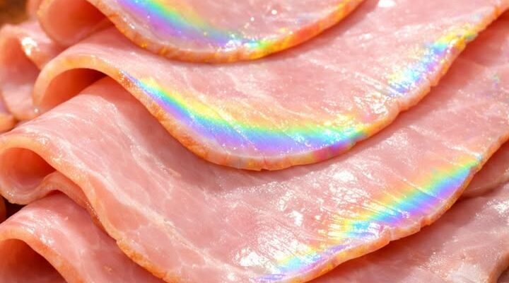 Have you ever pulled a slice of deli ham from the fridge only to notice a peculiar rainbow-like sheen glistening on the surface? This iridescent quality can be both mesmerizing and concerning, especially if you’re unsure about the freshness of your meat. The appearance of this colorful shine might make you question whether it’s safe to consume.