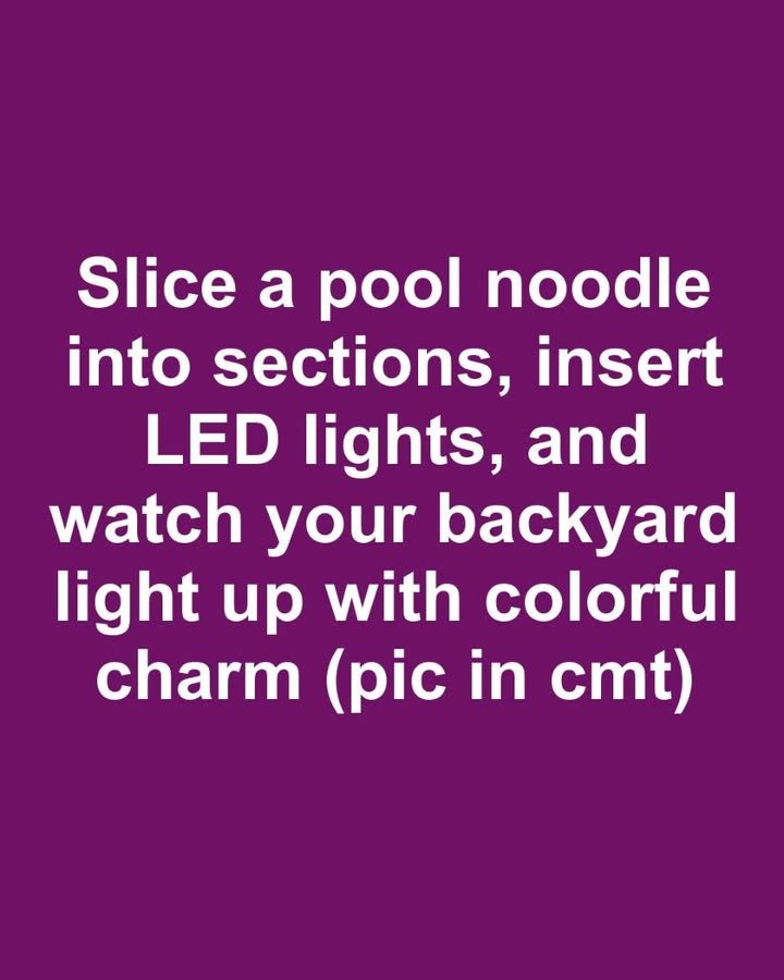 Slice a pool noodle into sections, insert LED lights, and watch your backyard light up with colorful charm