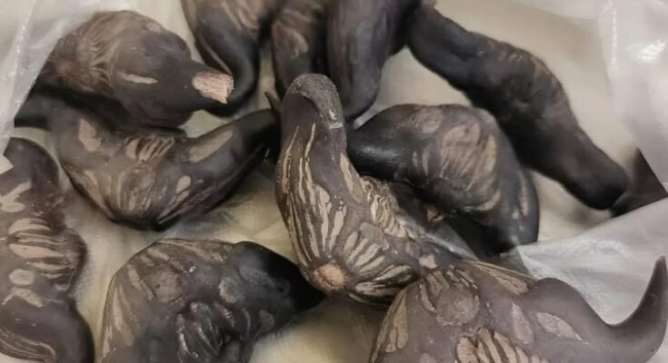 I look inside — and there it is… this. Dark, hard, strange things, as if from a museum or a dinosaur movie. They don’t look edible at all. In my hands they’re cold, like stones. I even smelled them — almost no scent.