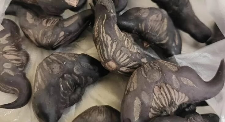 I peek within, and this is what I see. Strange, hard, dark objects that seemed like they belonged in a dinosaur movie or a museum. They don’t appear to be edible. They feel as cold as stones in my hands. Even when I smelled them, there was hardly any smell.