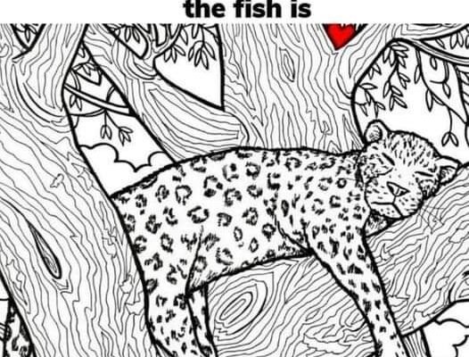 The image features a serene leopard lounging on a tree branch, surrounded by the intricate details of nature. But there’s a twist: hidden within the drawing is a cleverly concealed fish, and only those with sharp eyes can spot it. The caption claims, “10/10 eyes can see where the fish is,” daring viewers to test their observational skills.