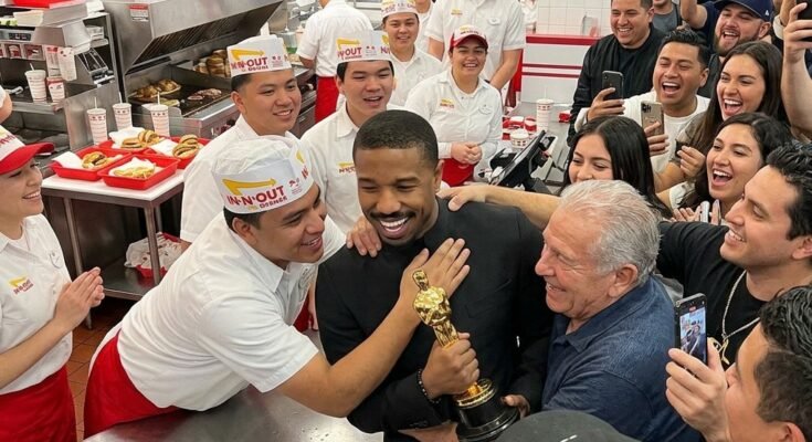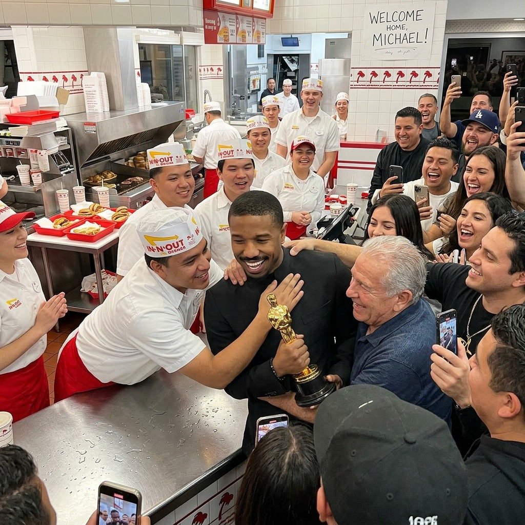 Instead I walk into absolute chaos because apparently Michael B. Jordan decided to show up right after winning an Oscar and now the entire place is acting like it’s a once-in-a-lifetime event. Phones everywhere, people screaming, workers abandoning what they’re doing just to crowd around him like the rest of us don’t exist.
